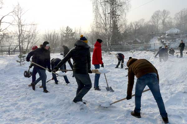 Снега в этом году не так много, и его пришлось собирать по всей территории интерната, но для нашей бригады из 25 волонтеров и 20 воспитанников интерната это не составило особого труда. Даже морозный день не остановил добровольцев, и они по максимуму сделали запланированное. Теперь на территории интерната красуется большая горка, черепаха Тортилла, пара новогодних ёлок, а площадка для катка разрисована под хоккейное поле. Большую в помощь в строительство снежного городка внесли активисты некоммерческой организации «Источник жизни».