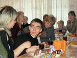 Ну а в завершении, батюшка пригласил всех в трапезную, где дети пили чай и кушали вкусные куличи. Православный клуб «Встреча» показал детям добрую и мудрую сказку про царя, и трех сыновей. Затем все пели под гитару, а самым трогательным, был момент, когда дети инвалиды по слуху пели для детей с диагнозом ДЦП.